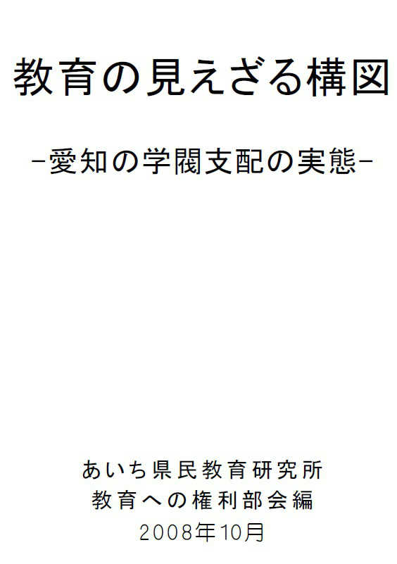 あいち民研は発足時から愛知の高校入試制度の研究を活動の柱の一つとしてきました。この間、研究部会での調査・研究活動、学習会・公開シンポジウムなどを開催し、その成果の一端を刊行物としてまとめてきました。現在、それらは品切れとなっています。そこで今回、それらの中の一部をあいち民研のウエブサイトで公開することにしました。刊行されてから時間が経っていますが、愛知の高校入試制度、とりわけ複合選抜制度の問題を考える基礎資料として有効だと考えます。広く活用されることを願っています。
